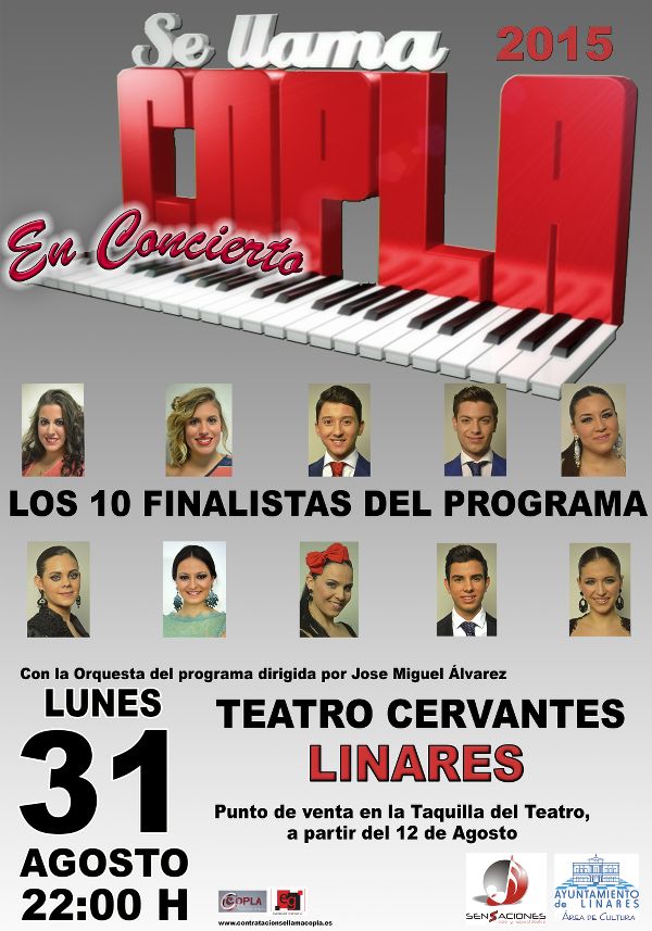 Y La Copla tiene la palabra! No te pierdas a los 10 finalistas del programa Se Llama Copla, el 31 de agosto, en el Teatro Cervantes de Linares. Venta de entradas en la taquilla del teatro a partir del 12 de agosto.